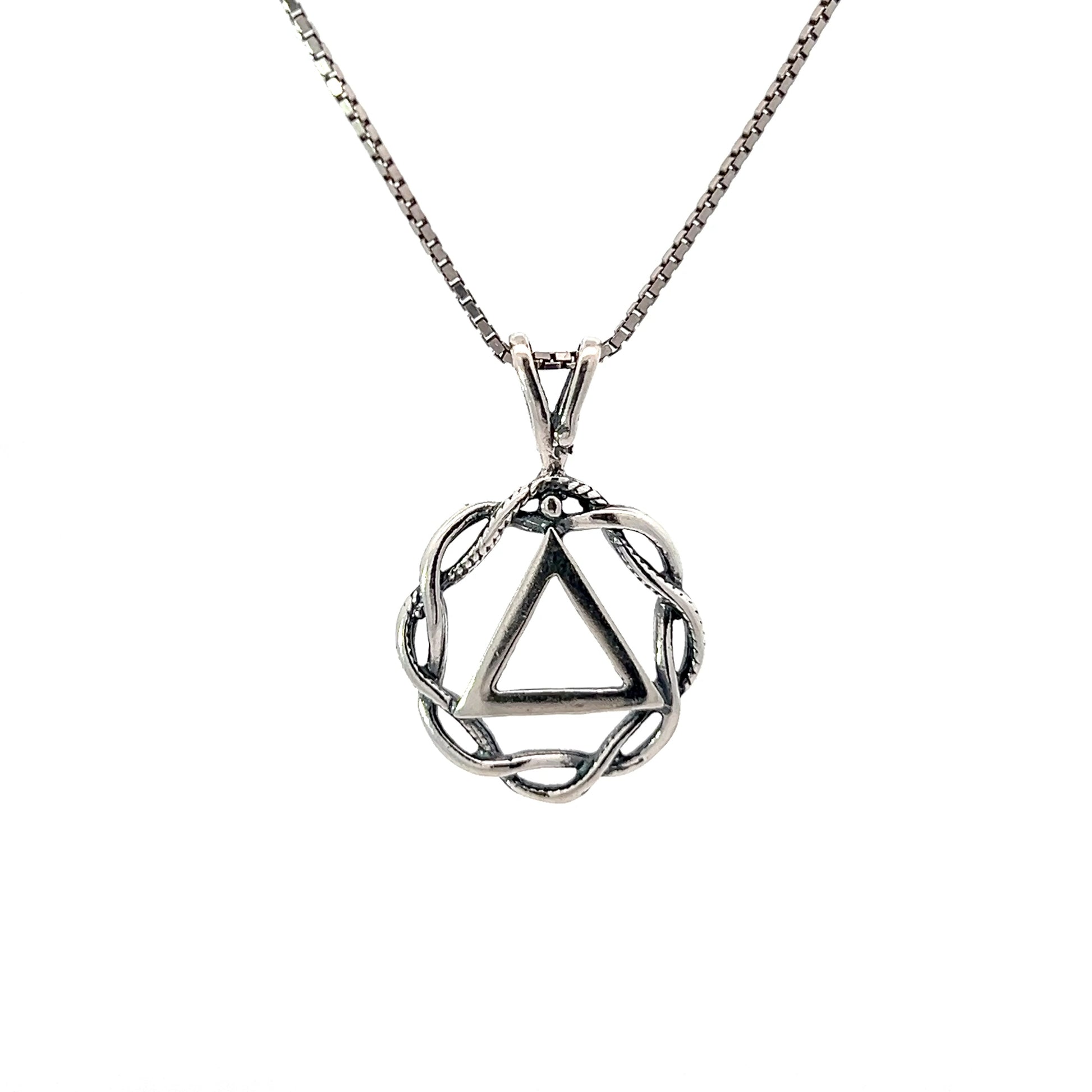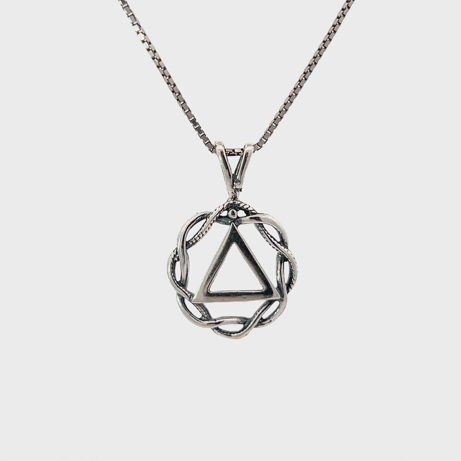 This detailed Sterling Silver AA Pendant features the classic Alcoholics Anonymous circle and triangle symbol set within a beautifully textured basket weave-style circle. A unique design that symbolizes the woven strength of fellowship, unity, and support, this piece blends style with meaning.