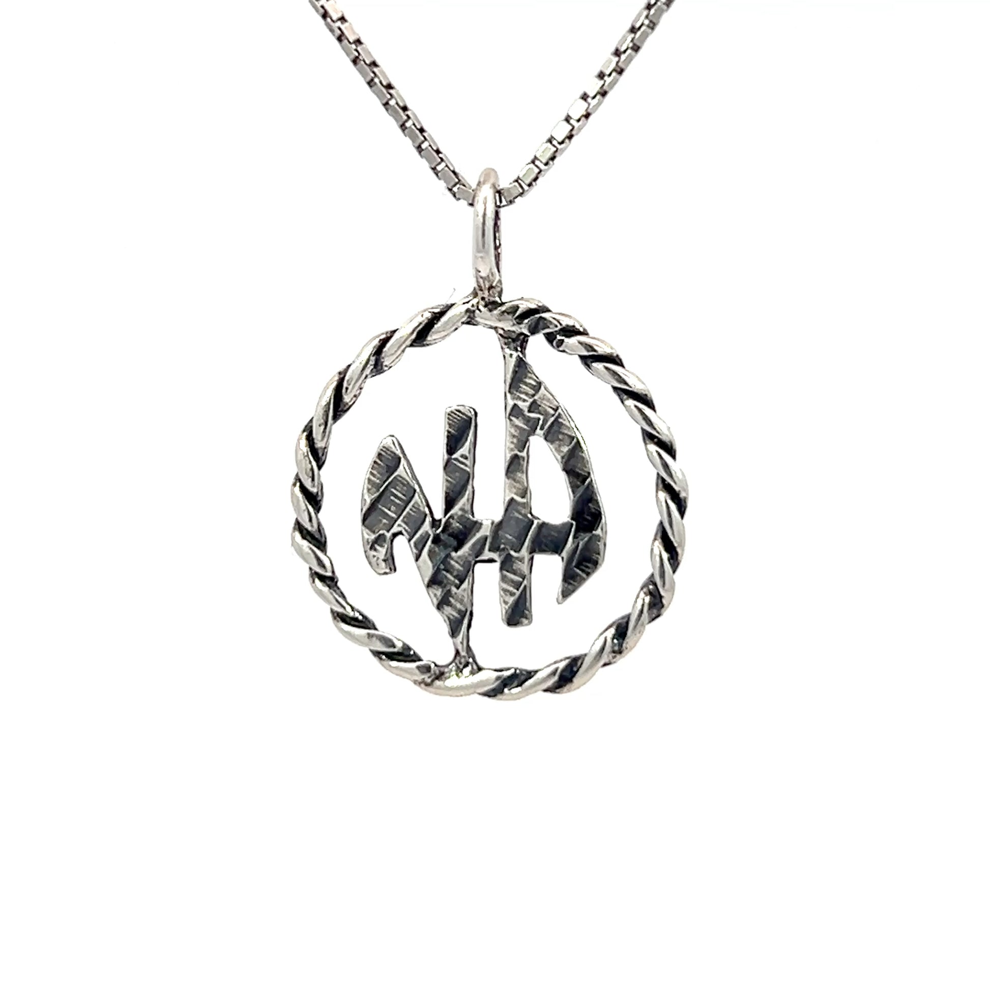 Sterling Silver Pendant, Narcotics Anonymous NA Initials in a Twist Wire Style Circle Medium Size