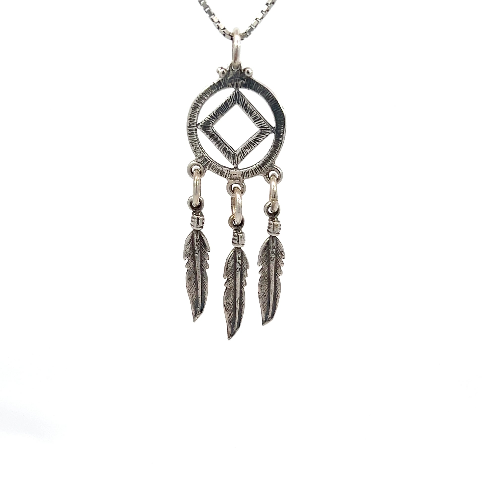 Sterling Silver Pendant, Narcotics Anonymous NA Symbol with 3 Feathers, Medium/Large Size