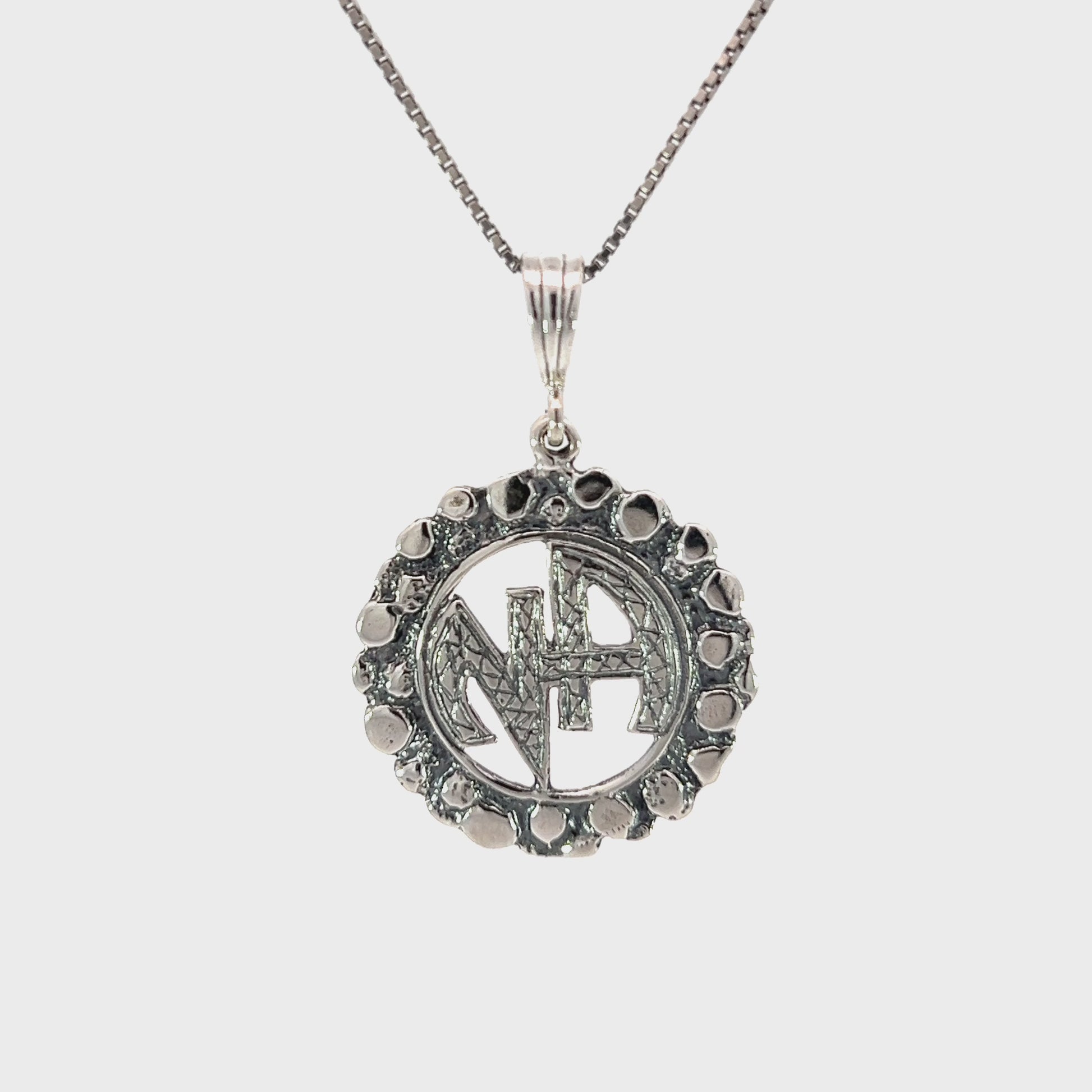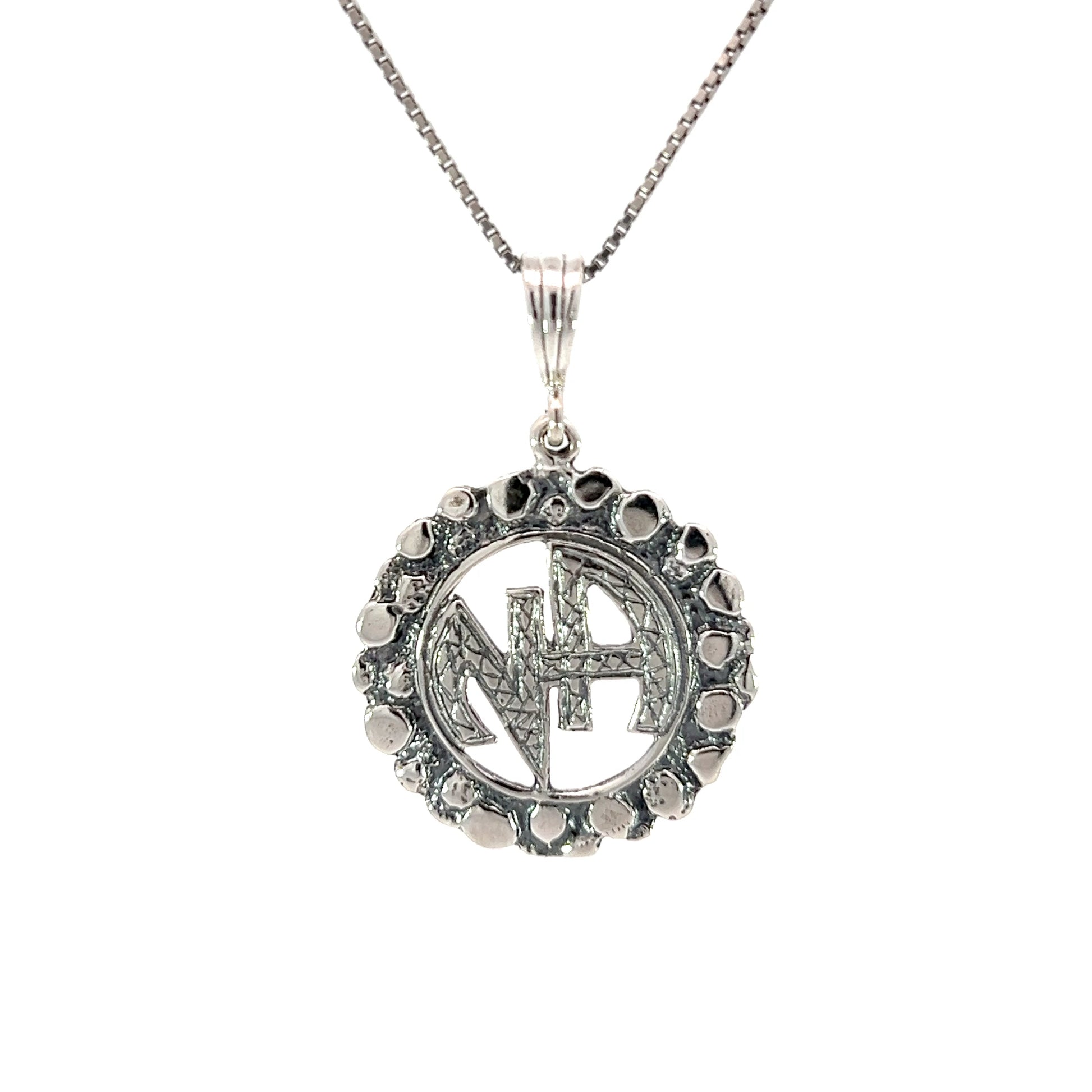 Sterling Silver Pendant, Narcotics Anonymous NA Initials in a Nugget Style Circle