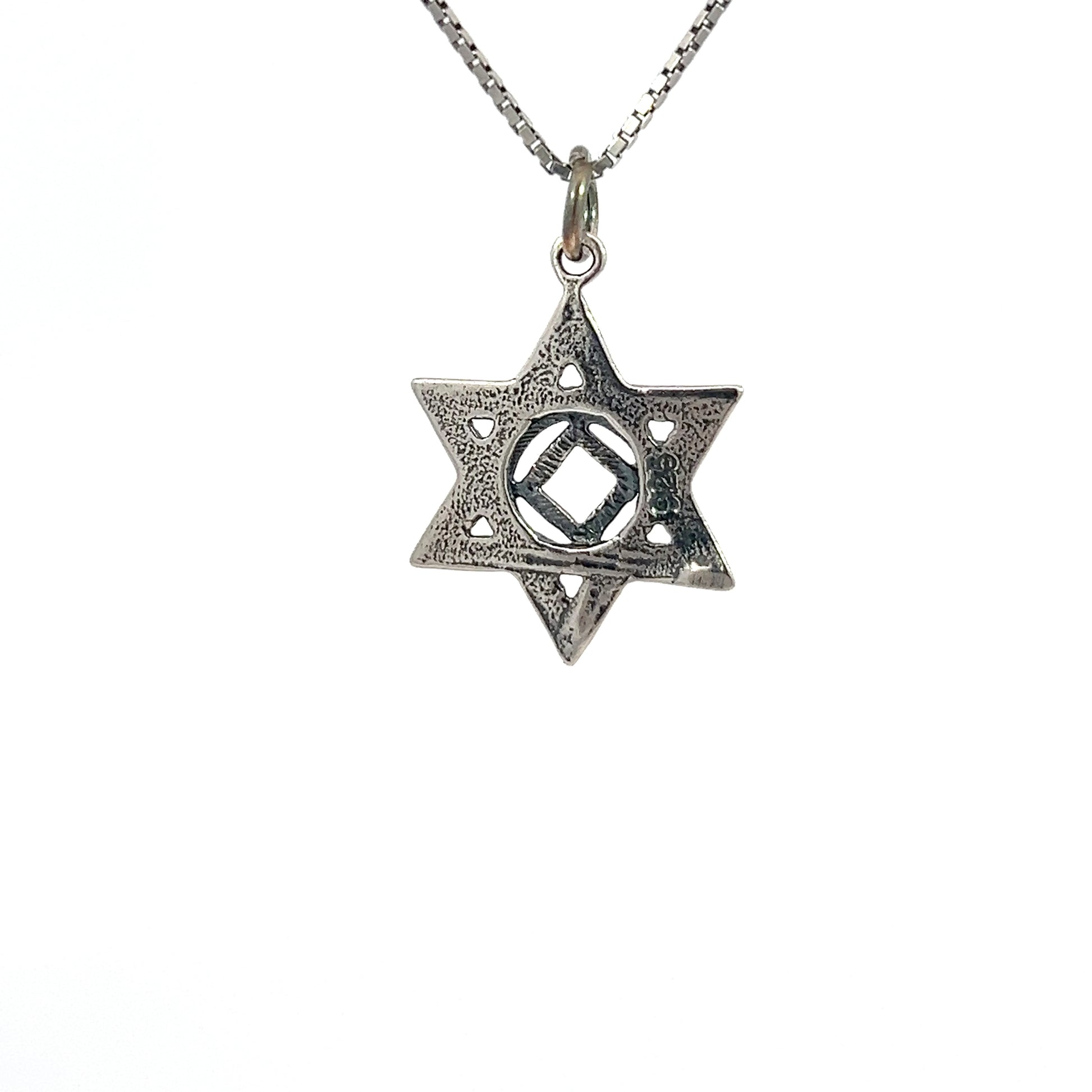 Sterling Silver Pendant, Narcotics Anonymous NA Symbol in a Jewish Star of David, Large Size